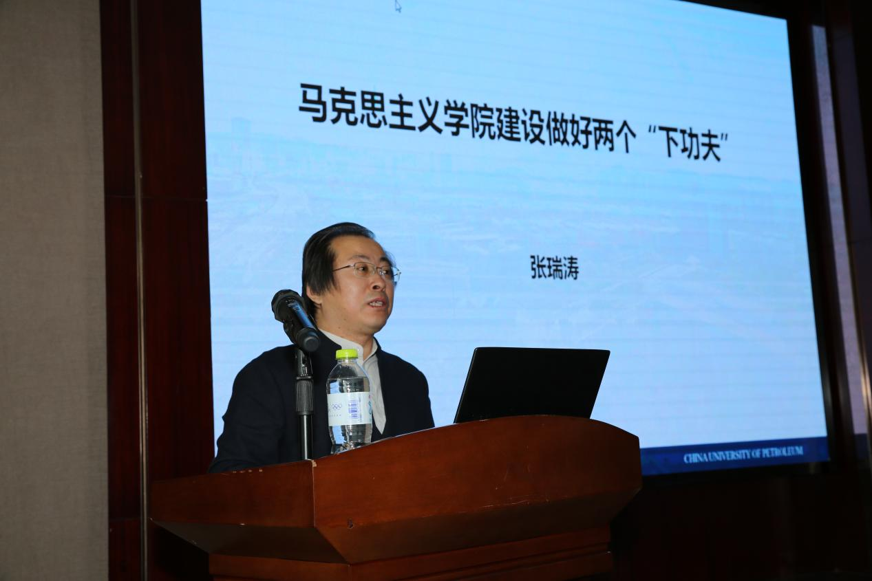 会上,中国石油大学(华东)马克思主义学院院长张瑞涛教授作主旨报告。山东师范大学、山东理工大学等十余所高校马克思主义学院的书记、院长就马院现代化治理交流了经验,青岛理工大学马克思主义学院院长华章琳教授主持研讨交流。(供稿:马克思主义学院 责编:徐展)