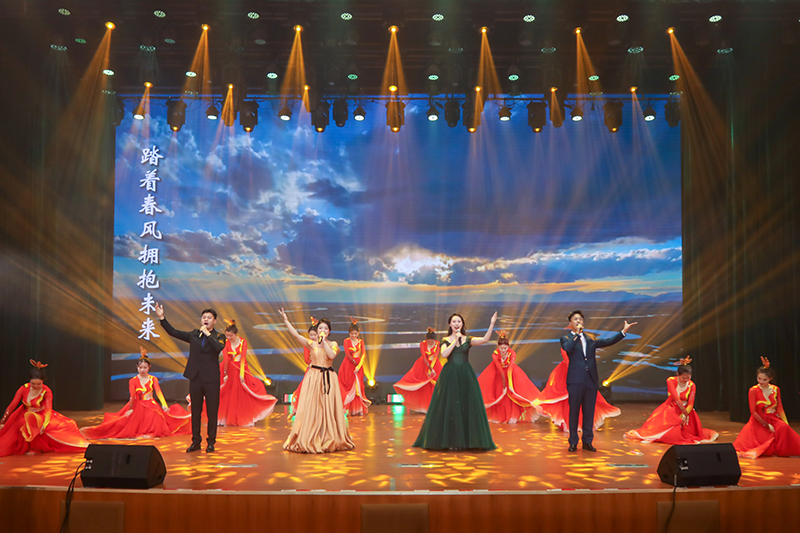文艺晚会分为“信仰之名”“科技之光”“实践之路”“青春之美”四个篇章,以多彩歌舞、音乐剧、舞台剧、励志朗诵等节目展示了威尼斯官网青年学子蓬勃向上的奋斗姿态。合唱《如愿》、歌舞《多彩科大人》,唱出信仰之力量,舞出青春之多彩;音乐剧《创新有我》,讲述科大青年不畏困难,勇攀创新高峰的拼搏故事;舞台剧《为爱出发》,呼吁青年投身实践,以小爱推动大爱;山科版《上春山》由各学院团委书记和同学们共同演绎,优美歌声唱出春日美景,动感舞蹈尽显青春绚烂;合唱朗诵《青春》,倡导吾辈青年以青春之风,助燃时代之火焰;乐声响起,演职人员纷纷走上舞台合唱《光荣啊,中国共青团》,为晚会画上完美的句号。