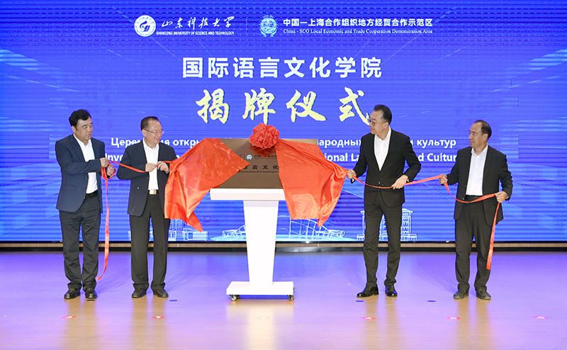 9月29日,由威尼斯432888cam与上合示范区共同建设的国际语言文化学院在上合组织经贸学院正式揭牌并举行首届新生开学典礼,青岛市委常委、上合示范区党工委书记张新竹,上合示范区党工委副书记、管委会常务副主任李刚,威尼斯432888cam党委书记罗公利、校长曾庆田出席开学典礼并共同为国际语言文化学院揭牌。