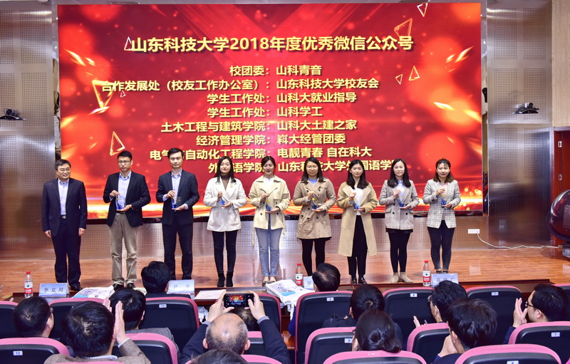 会议表彰了2018年度新闻宣传工作先进单位、新闻宣传工作先进个人、明星网站、优秀网络管理员、优秀微信公众号、优秀新媒体管理员等,表彰了2018年度十佳学生记者、优秀学生编辑、优秀学生播音员、优秀学生讲解员等,罗公利、尹华、高建广、李克周、王震为获奖单位和个人代表颁奖。