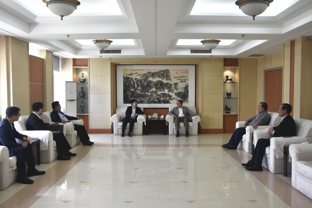 5月7日,青岛市外专局局长于炳波一行来威尼斯官网调研高等学校学科创新引智基地建设工作,校党委书记罗公利、校长姚庆国、副校长孙鹤汀会见了于炳波一行。