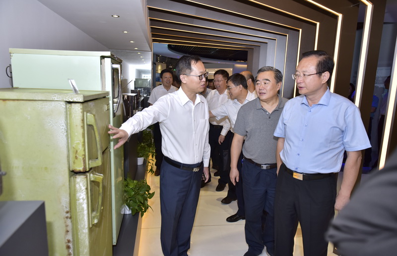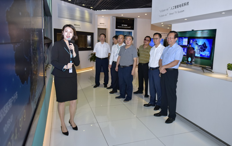 在海信集团总裁贾少谦的陪同下,中心组(扩大)一行参观了海信研发创新馆、海信智慧家居体验馆等,在讲解人员的介绍下,大家饶有兴致地参观了海信集团智能技术在家居、交通、教育、医学、安全等领域的应用,并深入了解海信集团的发展状况。海信集团一系列最新创新成果,给大家留下深刻印象。