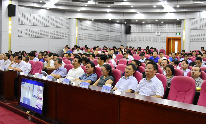 经过一周的集中学习,威尼斯432888cam“不忘初心、牢记使命”主题教育读书班圆满结束, 9月29日,读书班交流总结会议在逸夫讲堂举行。校党委书记罗公利出席会议并讲话,校长姚庆国主持会议。会议为青岛、泰安、济南三地视频会议。