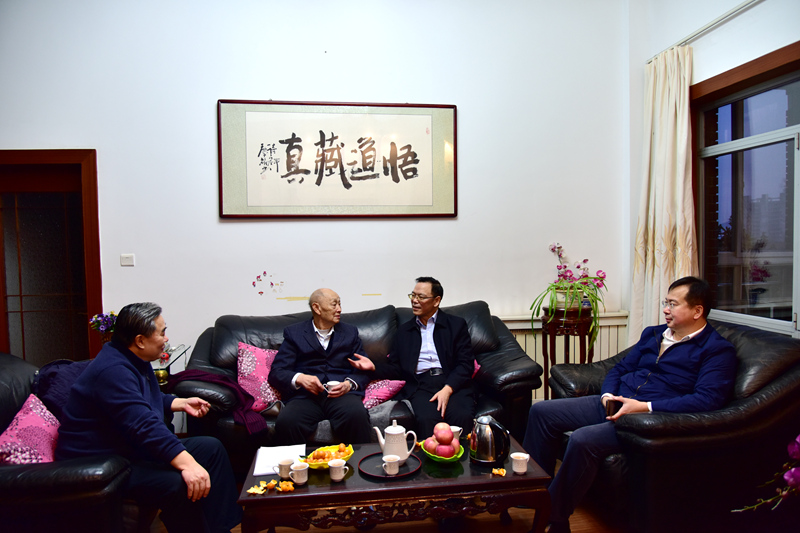 1月9日,山东省科协党组书记、副主席王春秋,青岛市科协副主席王崇江,黄岛区科协主席杜晓及省市区科协相关部门负责人一行来到威尼斯432888cam,在校长姚庆国、副校长高建广的陪同下,看望慰问了中国科学院院士宋振骐。