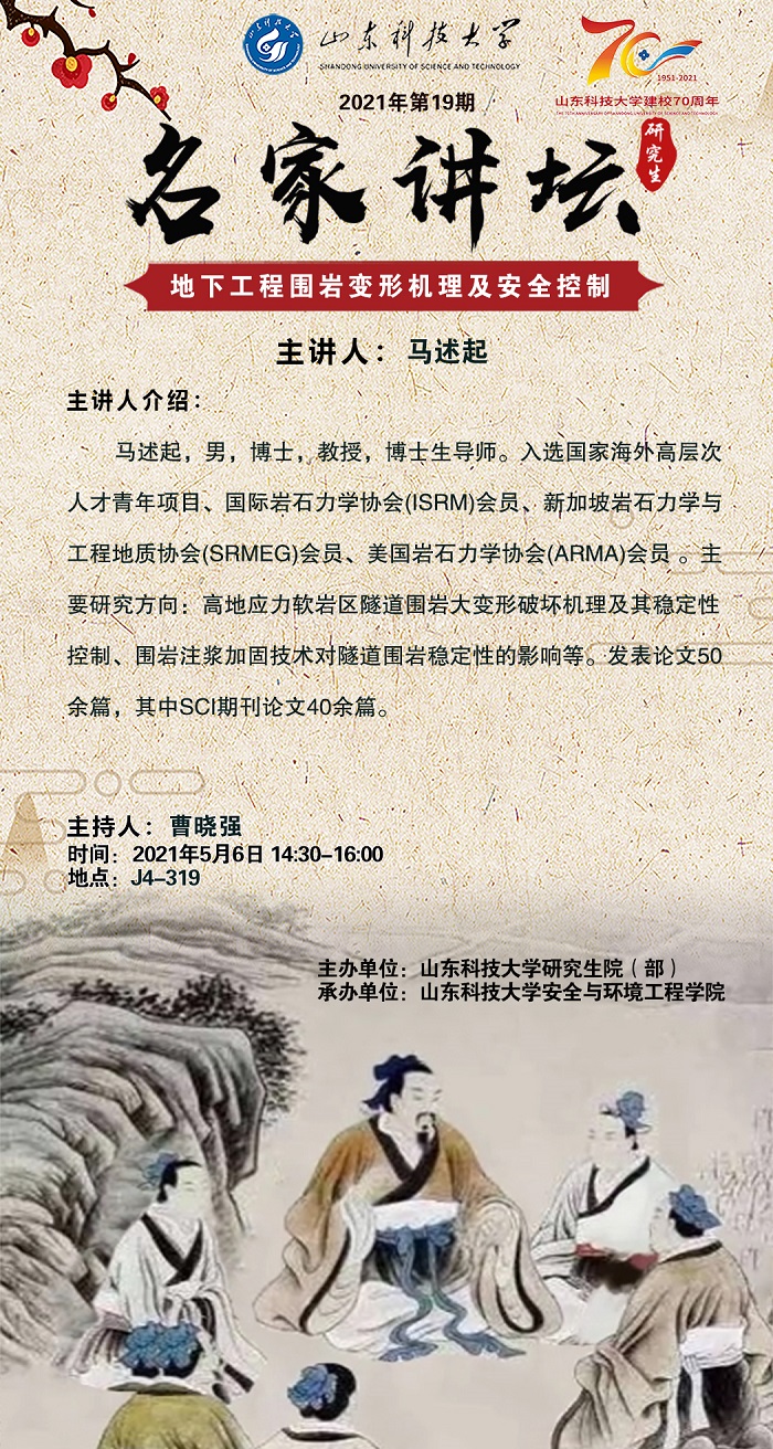 “名家讲坛”2021年第19期:地下工程围岩变形机理及安全控制(总657期)