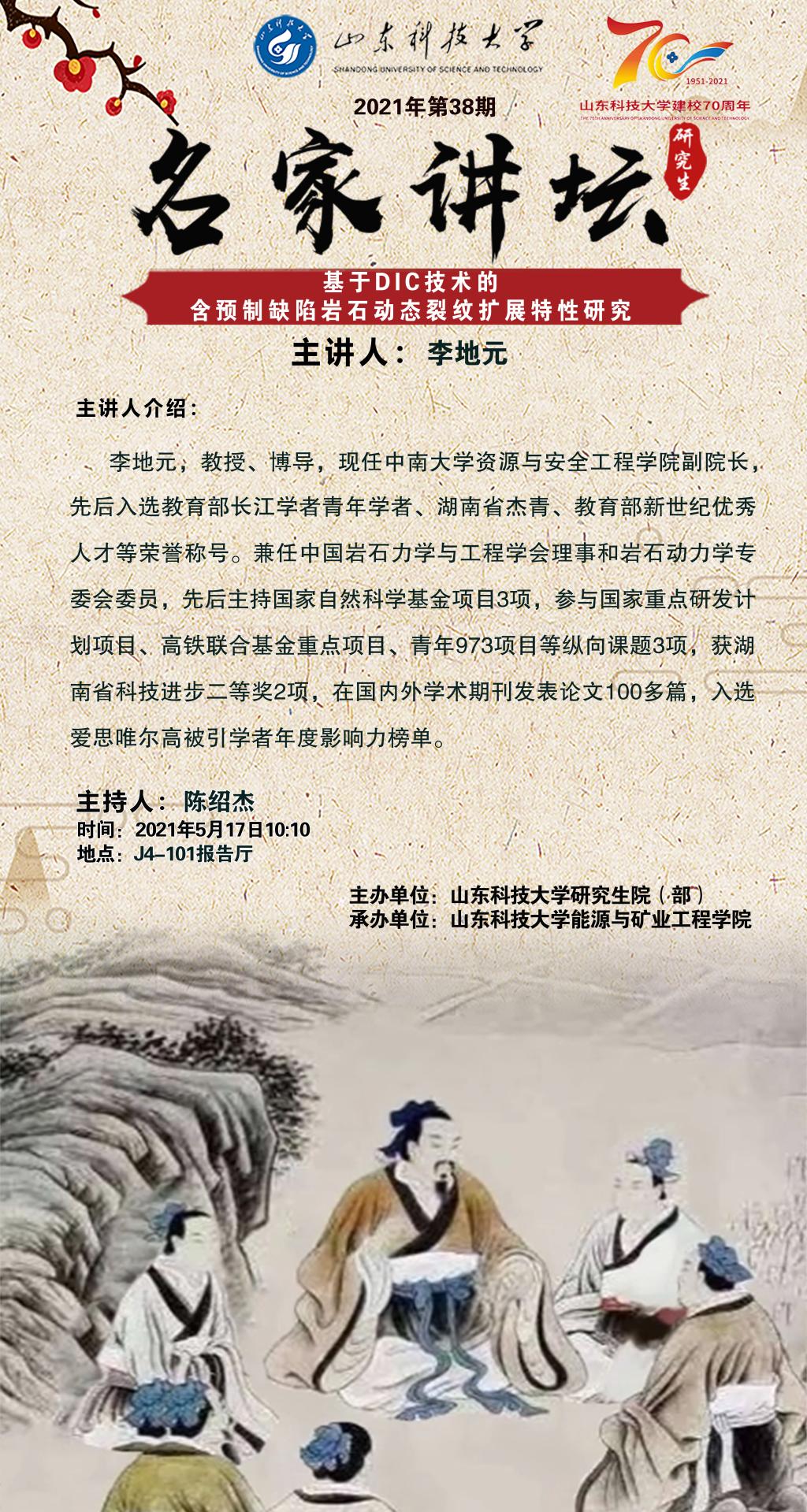 “名家讲坛”2021年第38期:基于DIC技术的含预制缺陷岩石动态裂纹扩展特性研究(总676期)