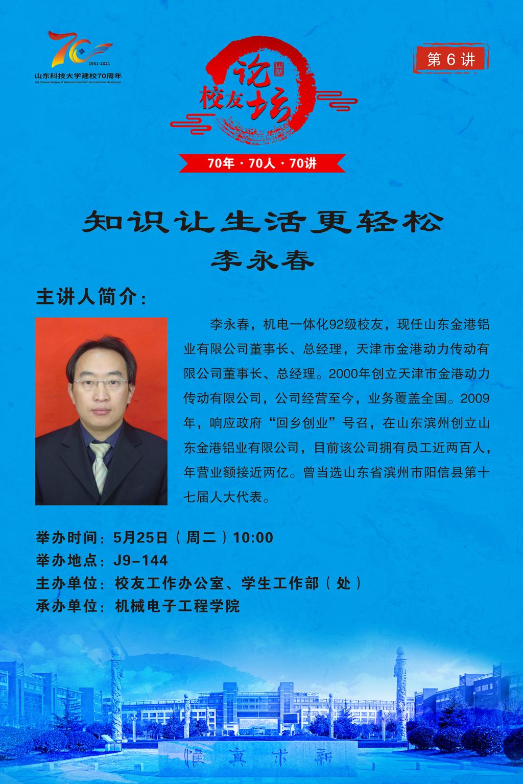 “70年·70人·70讲” 校友论坛第6讲:知识让生活更轻松