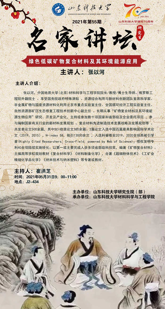 “名家讲坛”2021年第55期:绿色低碳矿物复合材料及其环境能源应用(总693期)