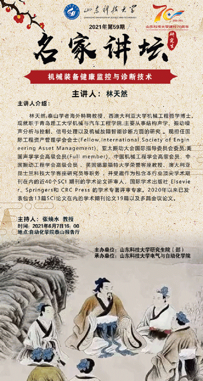 “名家讲坛”2021年第59期:机械装备健康监控与诊断技术(总第697期)