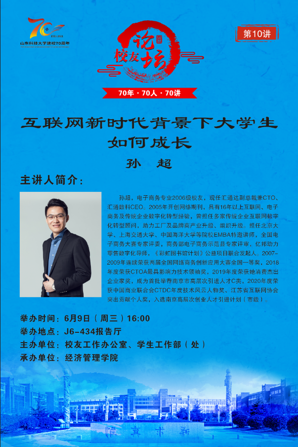 “70年·70人·70讲” 校友论坛第10讲:互联网新时代背景下大学生如何成长