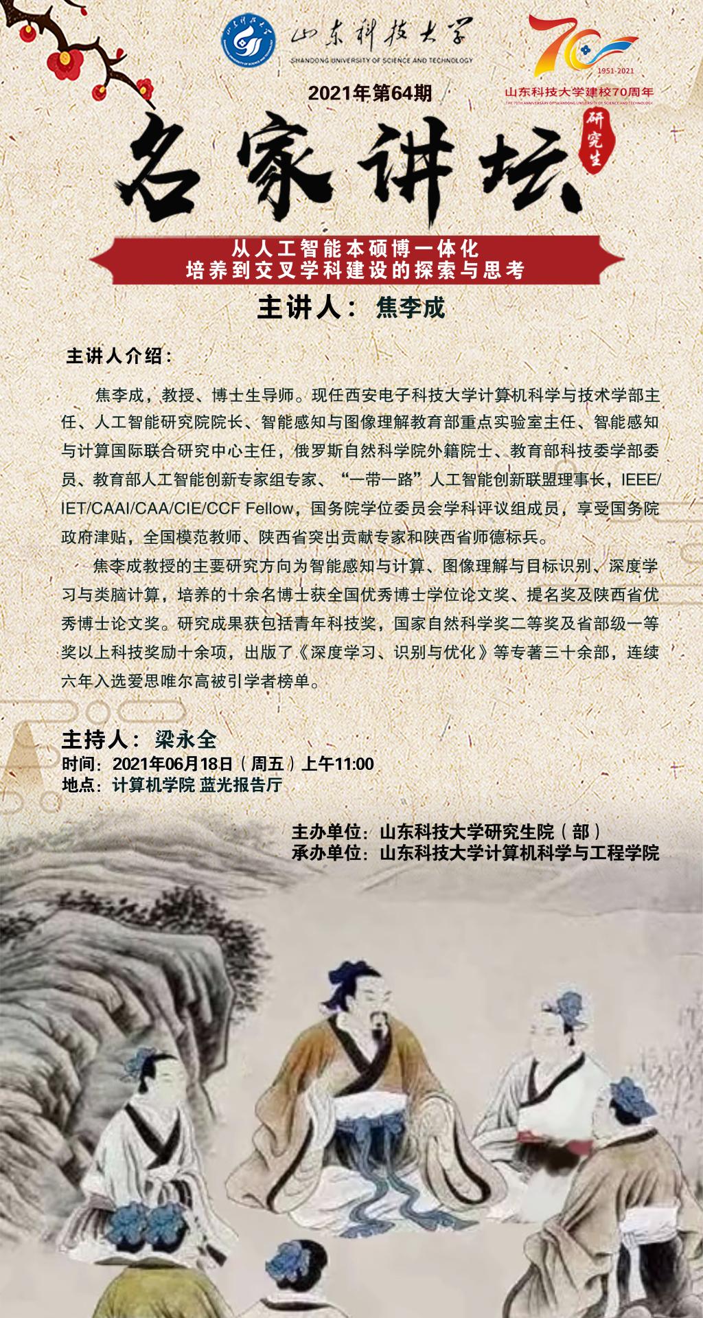 “名家讲坛”2021年第64期:从人工智能本硕博一体化培养到交叉学科建设的探索与思考(总第702期)