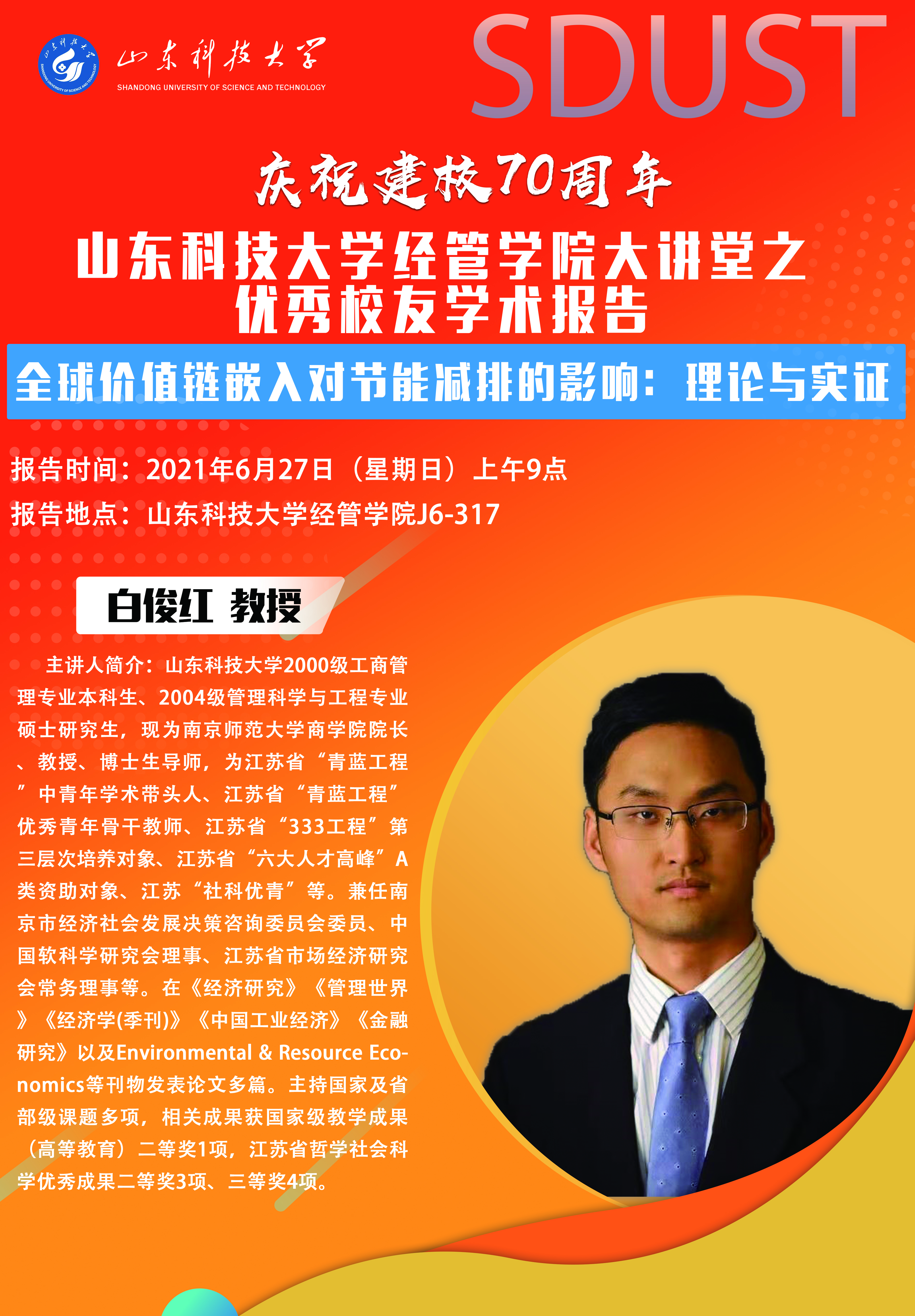 喜迎建校70周年华诞 威尼斯432888cam经管学院大讲堂