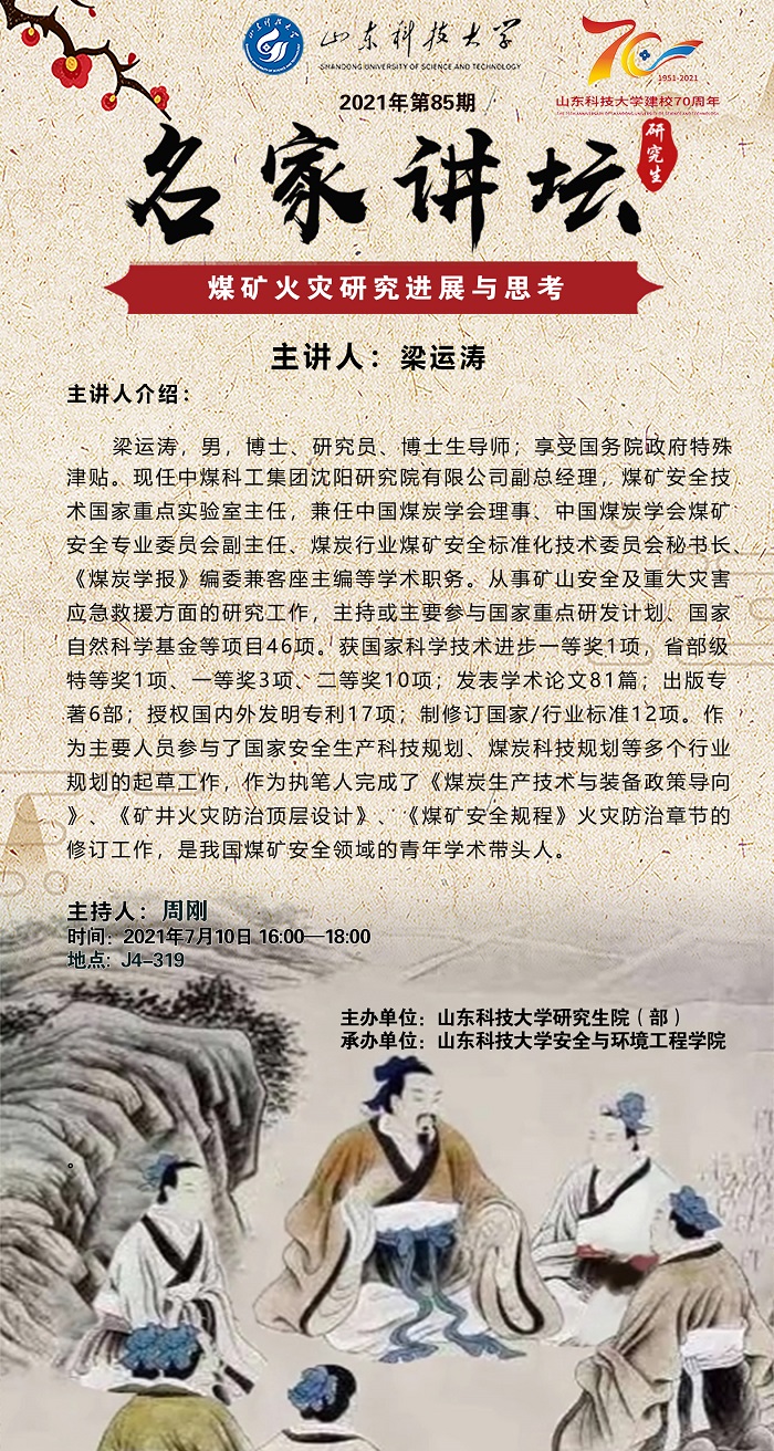 “名家讲坛”2021年第85期:煤矿火灾研究进展与思考(总723期)