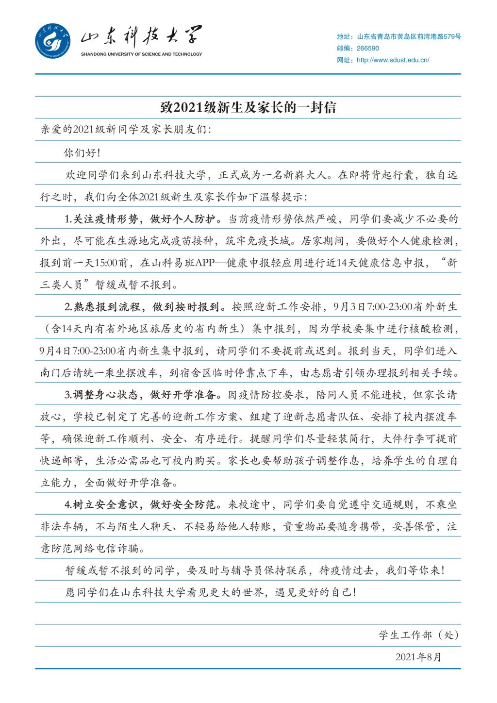 致2021级新生和家长的一封信