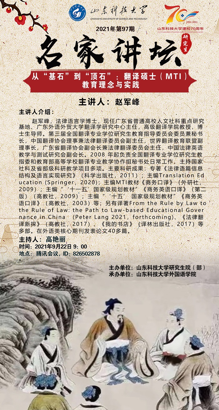 “名家讲坛”2021年第97期:从“基石”到“顶石”:翻译硕士(MTI)教育理念与实践(总735期)