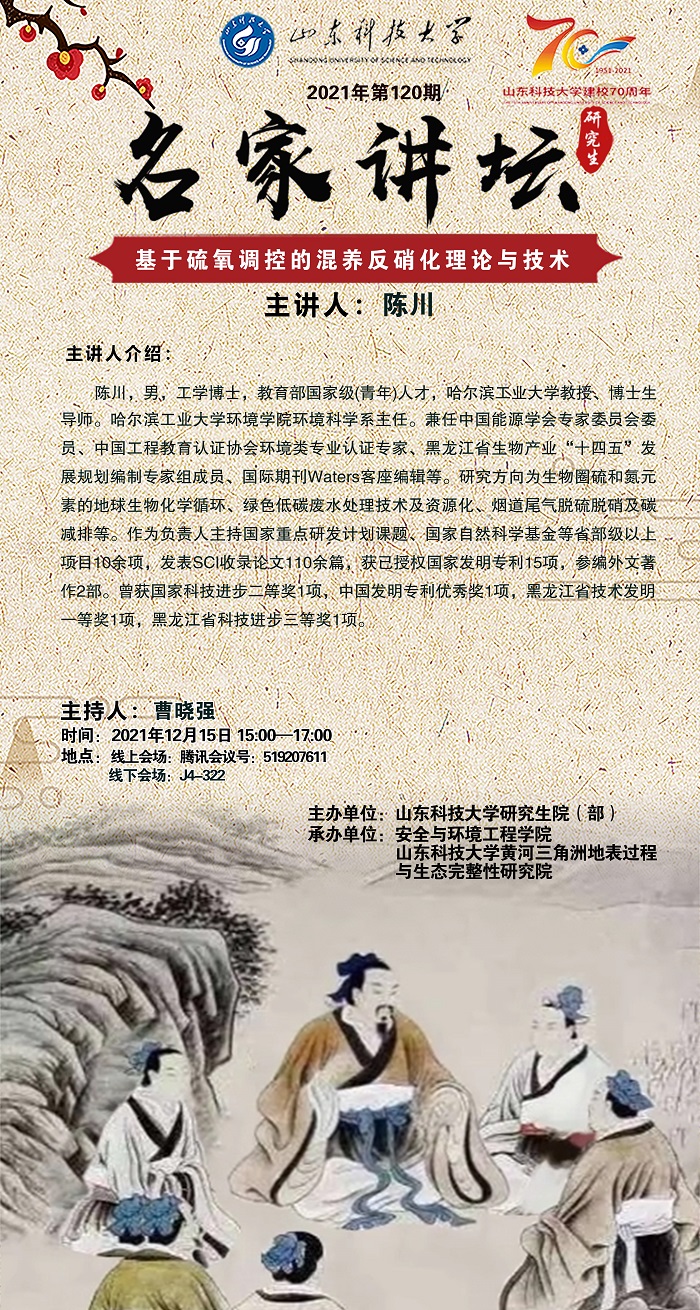 “名家讲坛”2021年第120期:基于硫氧调控的混养反硝化理论与技术(总758期)