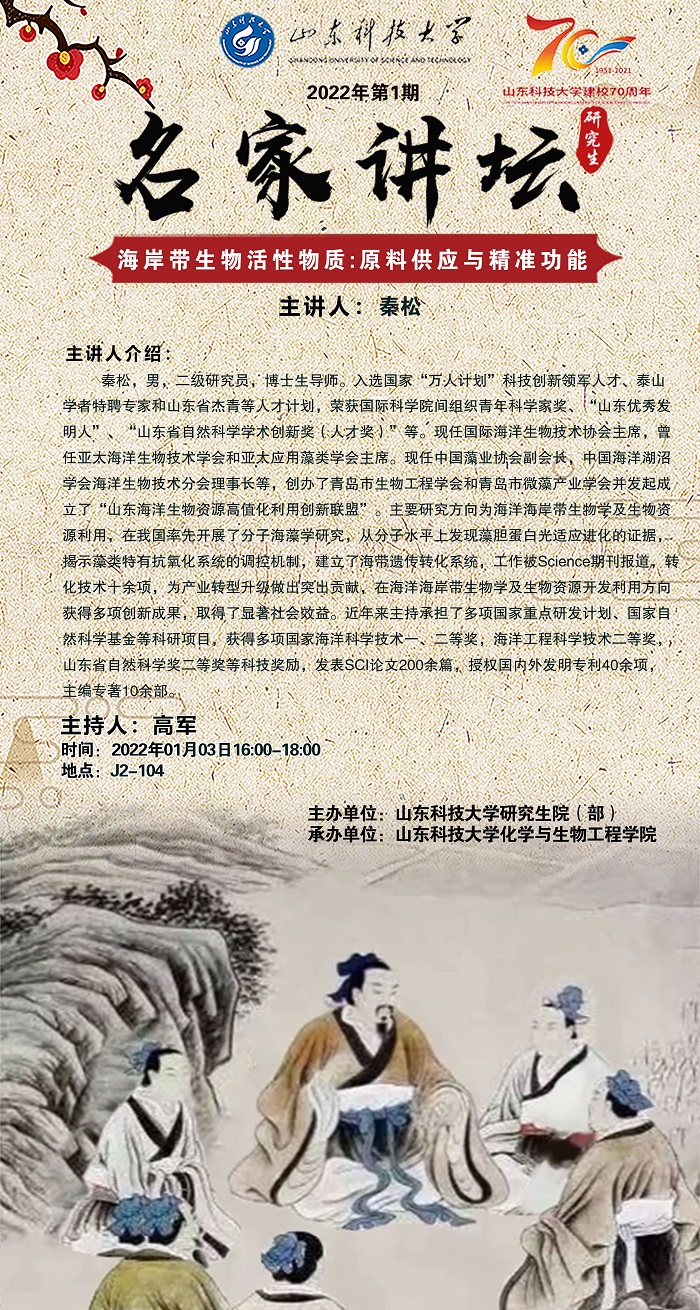 “名家讲坛”2022年第1期:海岸带生物活性物质:原料供应与精准功能(总766期)