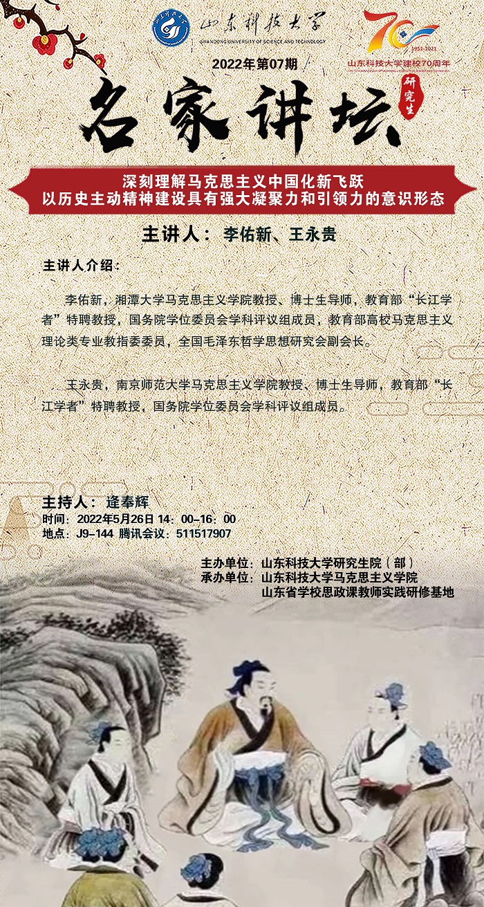 “名家讲坛”2022年第7期:深刻理解马克思主义中国化新飞跃;以历史主动精神建设具有强大凝聚力和引领力的意识形态(总772期)