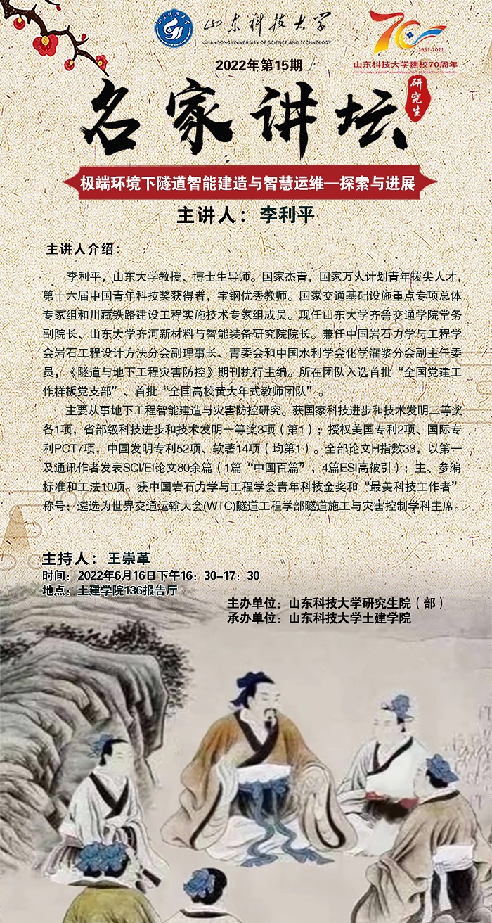 “名家讲坛”2022年第15期:极端环境下隧道智能建造与智慧运维—探索与进展(总780期)