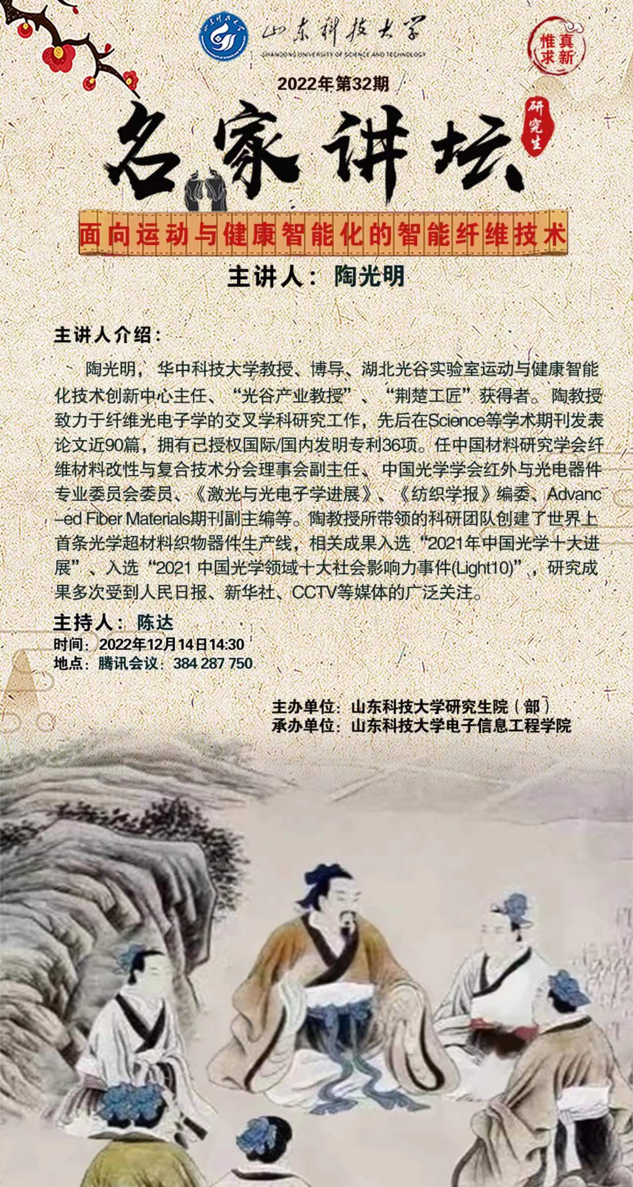 “名家讲坛”2022年第32期:面向运动与健康智能化的智能纤维技术(总797期)