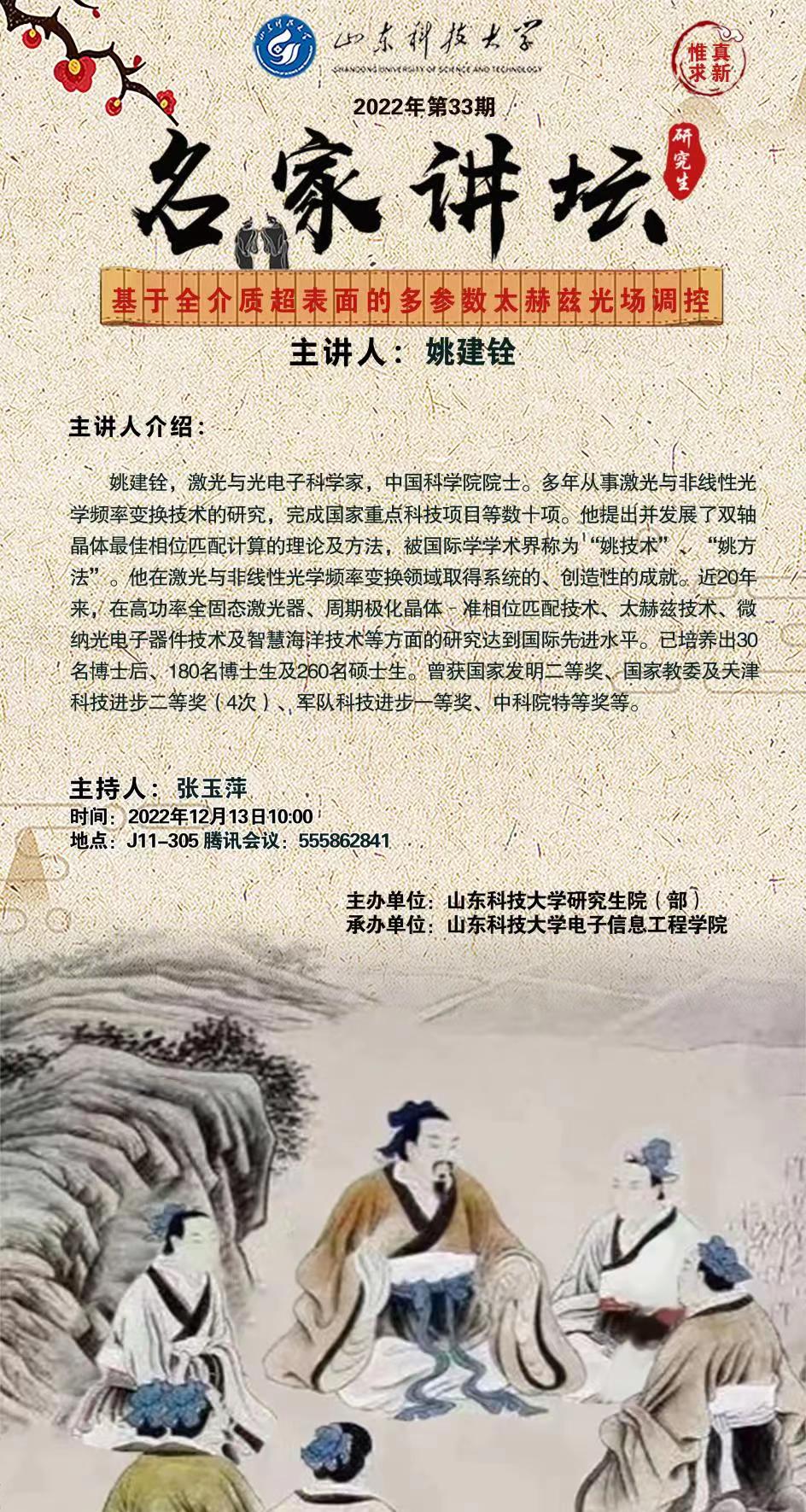 “名家讲坛”2022年第33期:基于全介质超表面的多参数太赫兹光场调控(总798期)