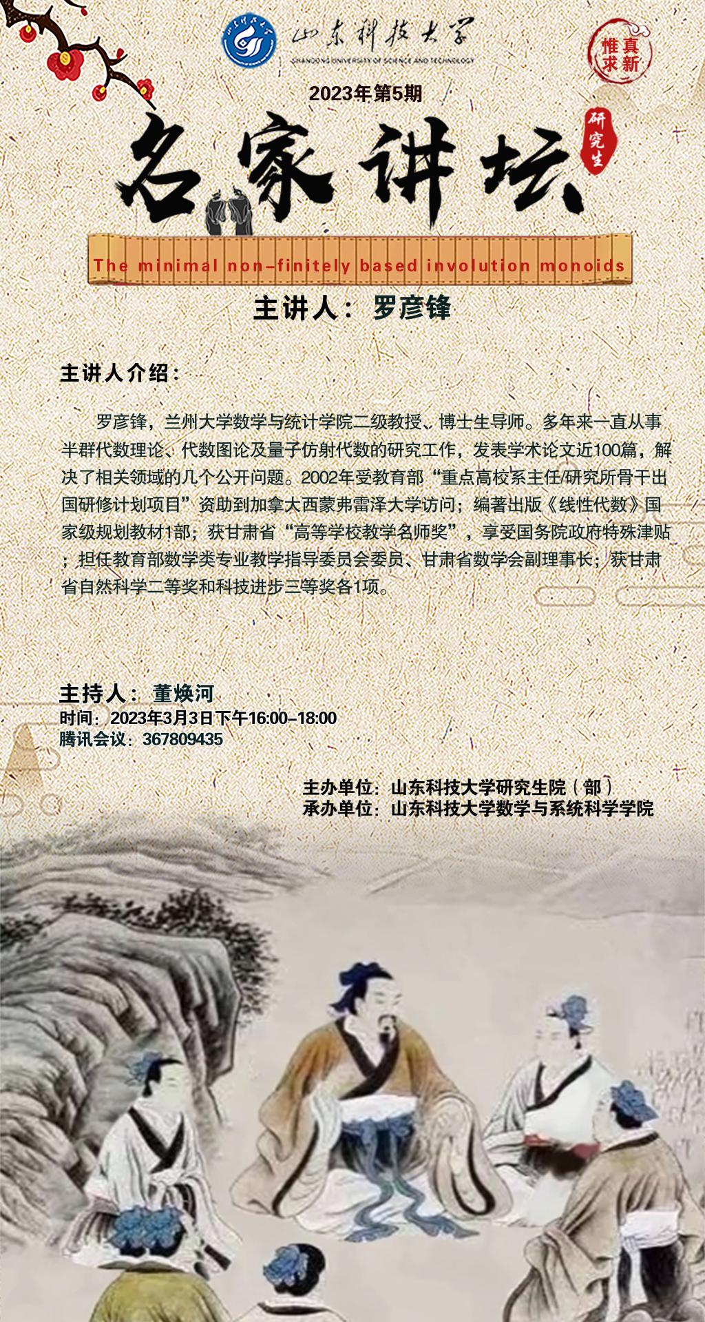 “名家讲坛”2023年第5期:The minimal non-finitely based involution monoids(总806期)