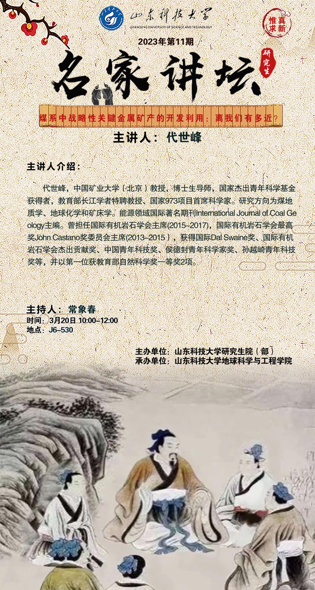 “名家讲坛”2023年第11期:煤系中战略关键金属矿产的开发利用:离我们有多近?(总812期)