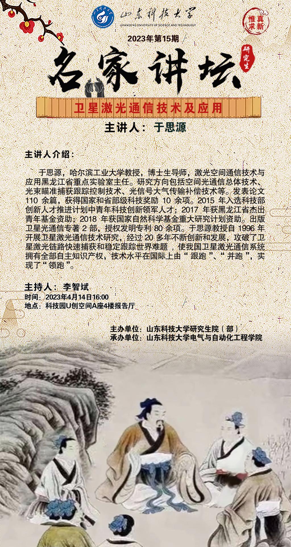 “名家讲坛”2023年第15期:卫星激光通信技术及应用(总816期)