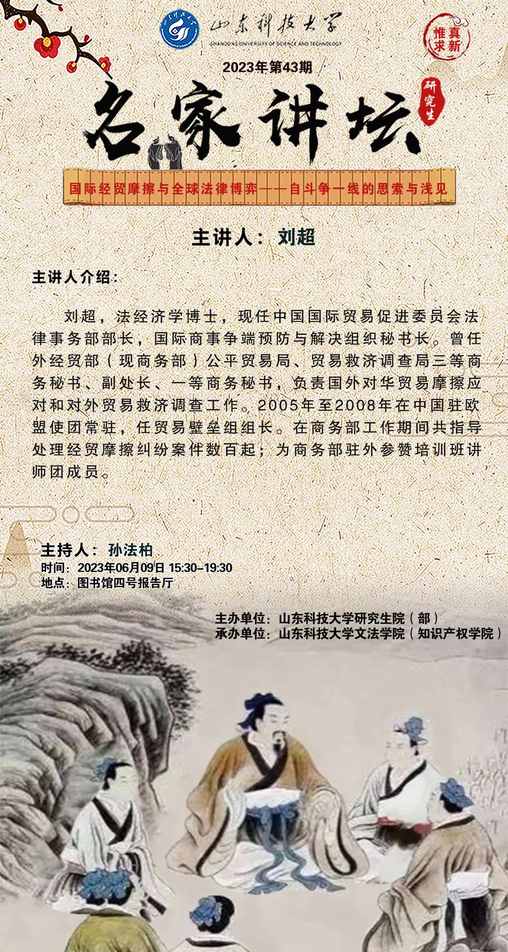“名家讲坛”2023年第43期:国际经贸摩擦与全球法律博弈——自斗争一线的思索与浅见(总844期)