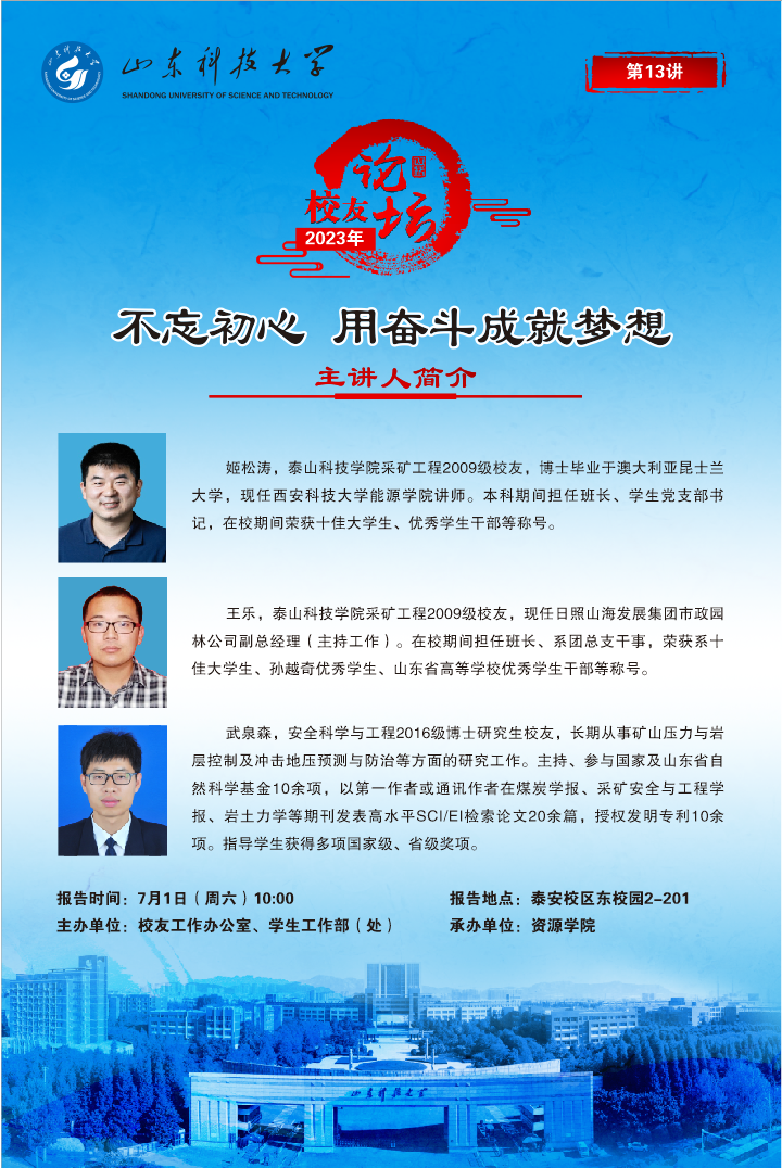 “校友论坛”2023年第13讲:不忘初心 用奋斗成就梦想