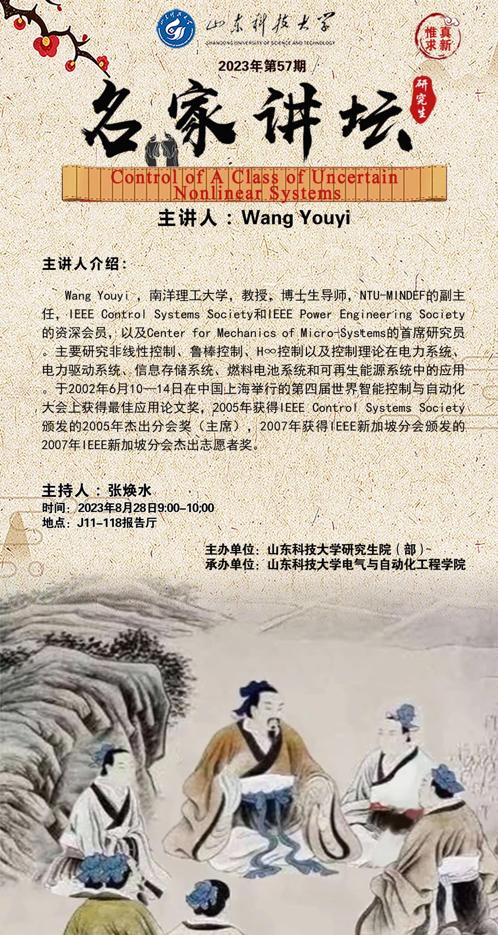 “名家讲坛”2023年第57期:Control Class of Uncertain Nonlinear Systems(总858期)