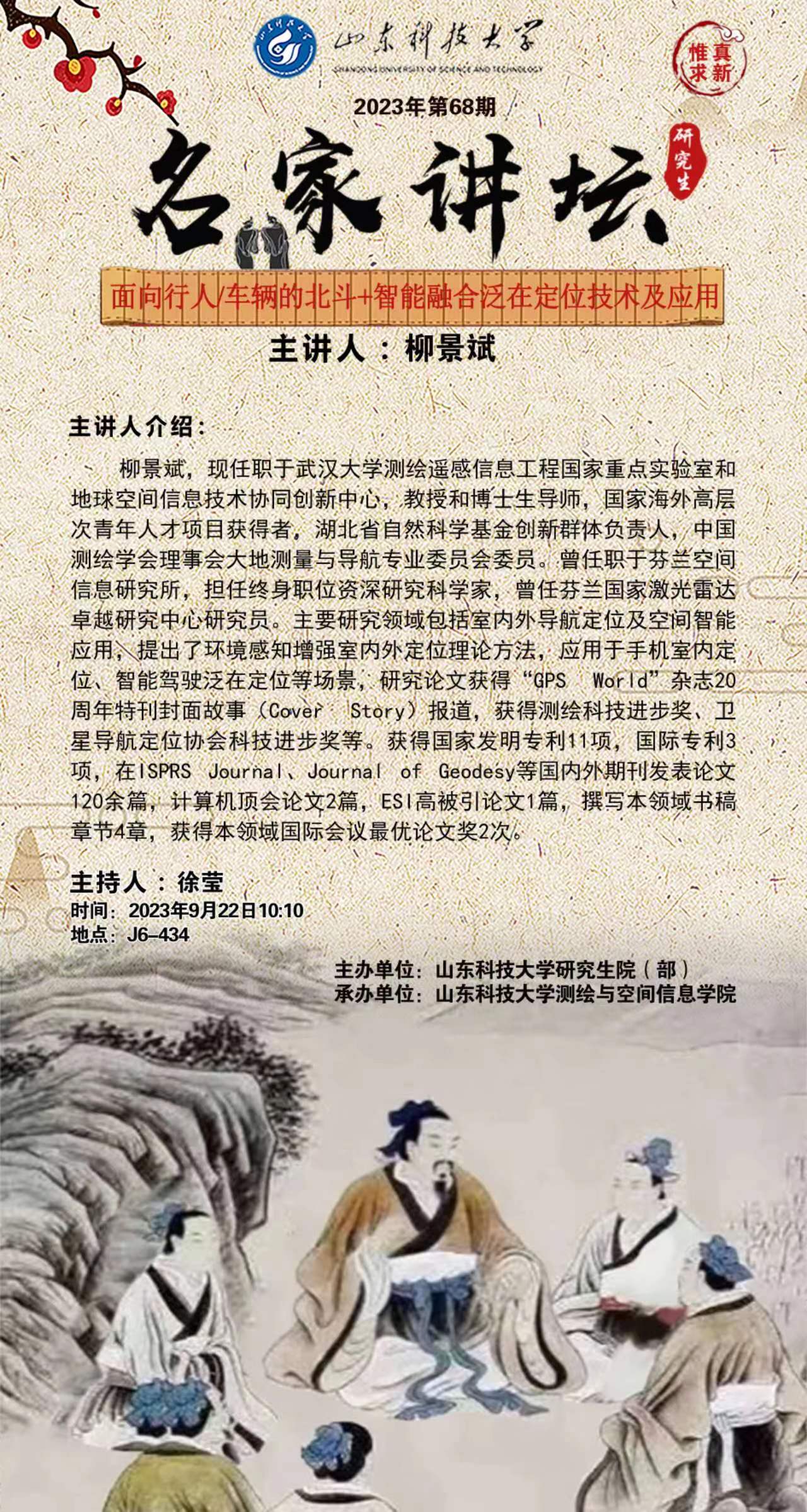 “名家讲坛”2023年第68期:面向行人/车辆的北斗+智能融合泛在定位技术及应用(总869期)